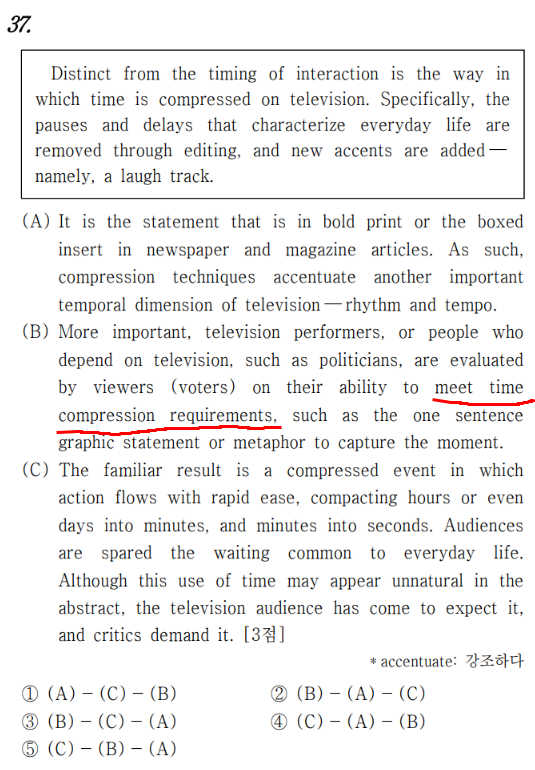 오늘의 예문 : 2020년 3월 고3 기출 모의고사 37번 문제