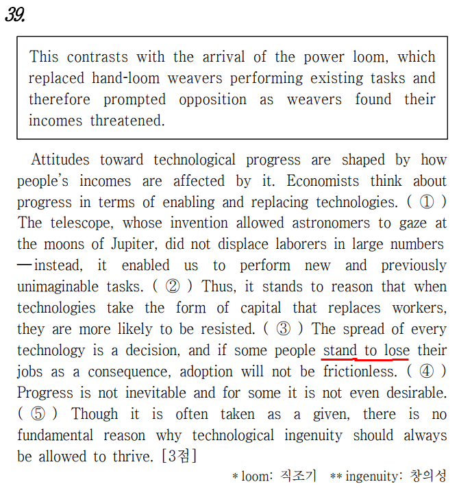 필자 블로그의 특성상 수능 수험생들을 위한 문제 풀이에 초점을 두지 않는다. 오늘 다룰 'stand'를 잘 활용하려면 일단 전체 문장 이해가 필요하니 아래에 요약을 해 뒀다.