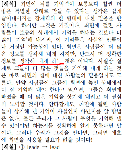 2019학년도 7월 고3 모의고사 28번 어법 문제에서 발췌