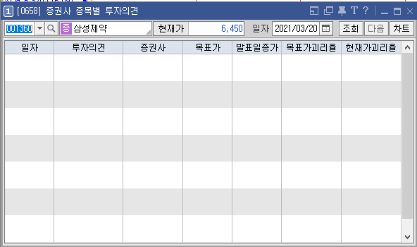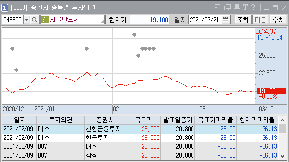 위 종목은 서울반도체라는 종목인데, 최근 한달정도는 분석자료가 없는지 지난 2월 9일까지의 자료만 있다. 목표가를 설정할 만한 충분한 자료가 없어서 목표가 설정이 어려워서 그럴 것이다.