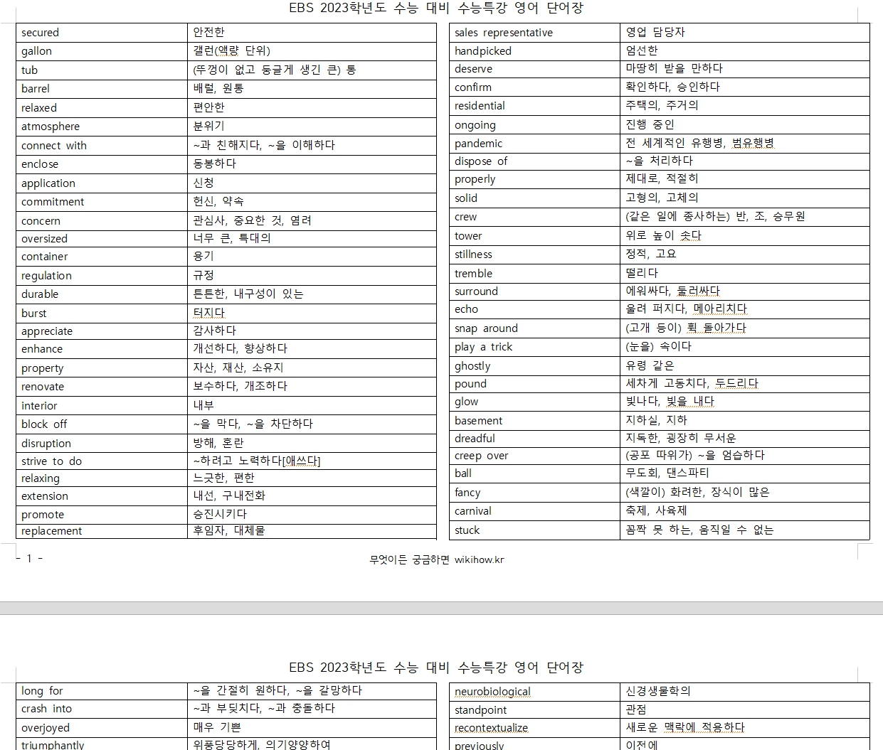 2023학년도 EBS 수능 특강 영어 단어장, hwp 한글문서, 편집 가능, 학생 테스트용