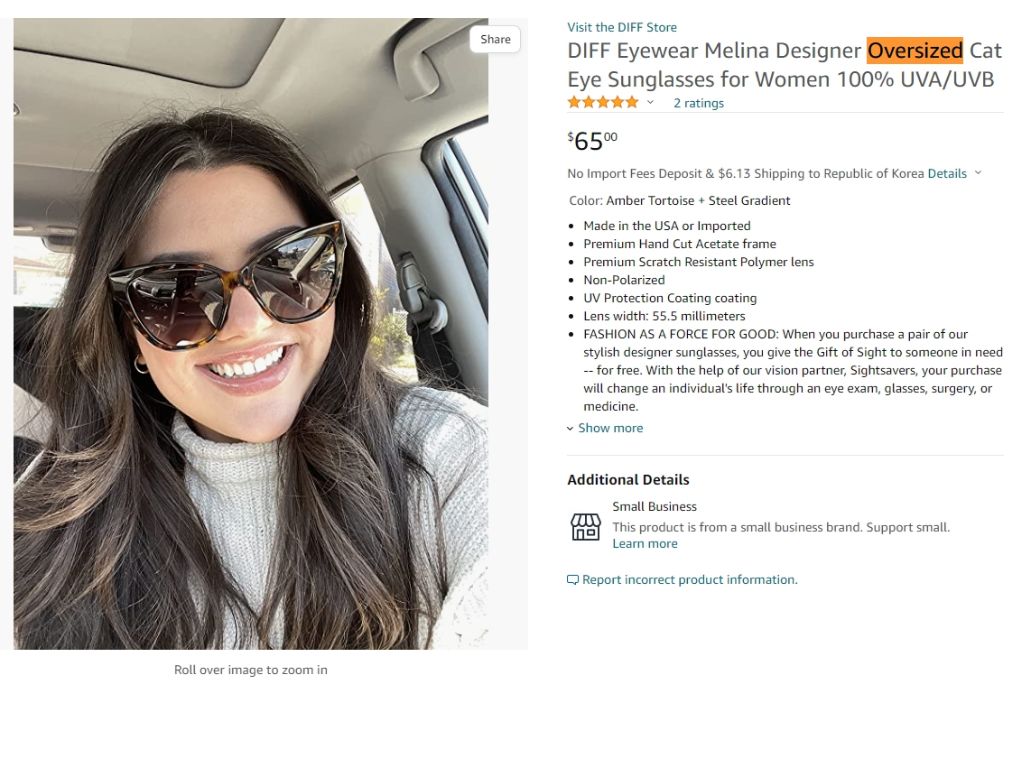 아래와 같이 크게 쓰는 선글라스도 oversize라는 키워드를 사용하고 있다.