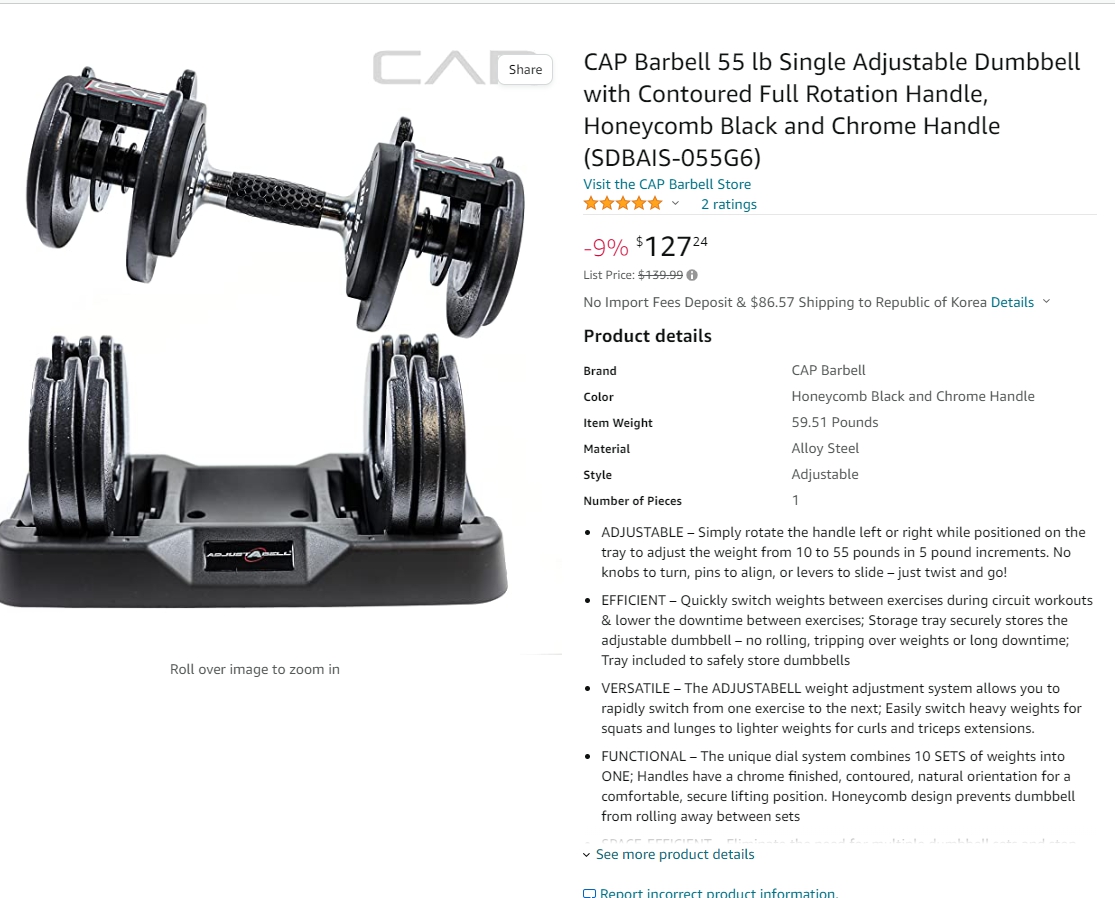 필자가 이 글을 쓰면서 알게 된 것이지만, 체형이나 키에 맞게 또는 상황에 따라 조절 가능한 제품은 다양하게 있는 것 같다. 특히 운동기구 같은 것은 필수적이라고 볼 수 있는데, 아래의 덤벨은 무게를 자유자재로 조절할 수 있다.