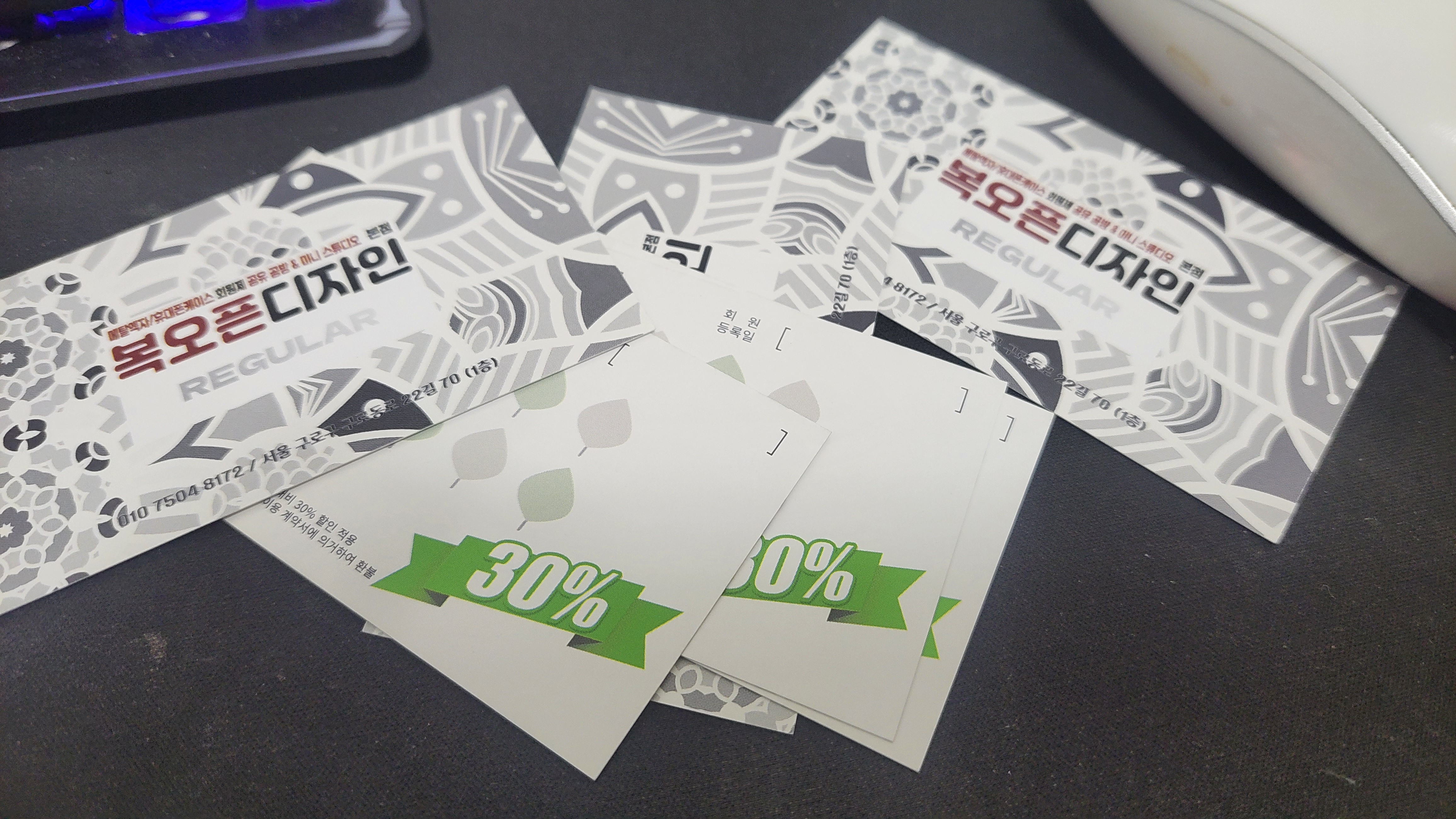 창업이라는 것도 쉽지 않지만, 취미생활이 부업으로 이어지기는 더더욱 쉽지 않은데요, 핵심은 바로 고객이 만족할 만한 품질의 완제품을 만들기가 쉽지 않다는 겁니다. 자기가 아무리 취미생활로 즐긴다 하더라도, 완성도가 떨어지면 제품으로서 가치가 없다는 것이죠. 하지만, 복오픈디자인에서는 누구라도 1시간 정도의 교육과 함께 실습하면 고객이 원하는 제품을 직접 바로 만들 수 있다는 겁니다. 익히는 시간이 사람마다 조금씩 다를 수 있는데요, 특별히 손재주 있거나 포토샵과 일러스트레이터를 잘 다루신다면 복오픈디자인에서 한 번 하는 것만 봐도 금방 완성품을 만들어 낼 수 있는 그런 시스템입니다.