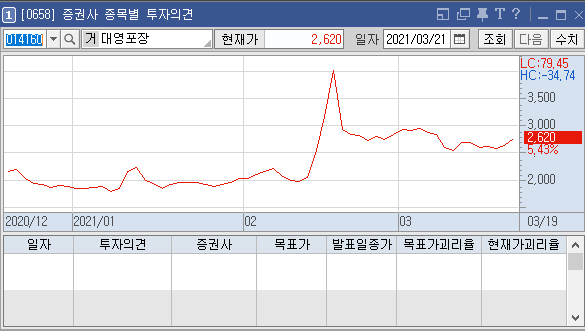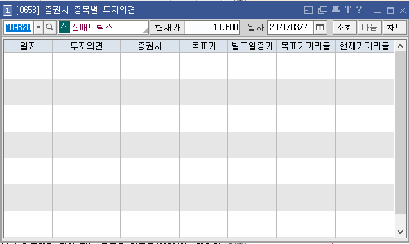 위 4가지 종목은 최근 증권사별로 목표가에 대한 분석이 전혀 없다. 이유는 여러 가지가 있겠지만 이 회사의 종목을 목표가를 내놓을 만큼의 충분한 분석 자료가 없다는 것이 주된 원인이 아닐까 추측할 수 있다.