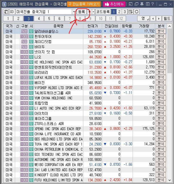 미국 상장 중국기업 얼마나 될까? 리스트 관심 종목에 한꺼번에 저장하기